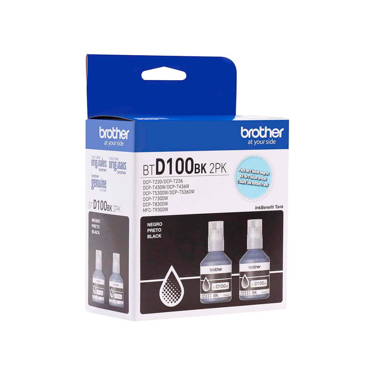 Kit com 2 garrafas de Tinta Brother BT-D1002PK na cor preta para utilização nas seguintes multifuncionais Brother: DCP-T230, DCPT230, T230, DCP-T236, DCPT236, T236, DCP-T430W, DCPT430W, DCP-T430, T430W, DCP-T436W, DCPT436W, DCP-T436, T436W, DCP-T530DW, DCPT530DW, DCP-T530, T530DW, DCP-T536DW, DCPT536DW, DCP-T536, T536DW, DCP-T730DW, DCPT730DW, DCP-T730, T730DW, DCP-T830DW, DCPT830DW, DCP-T830, T830DW, MFC-T930DW, MFCT930DW, MFC-T930, T930DW. Tinta com ótima qualidade de impressão e rendimento.