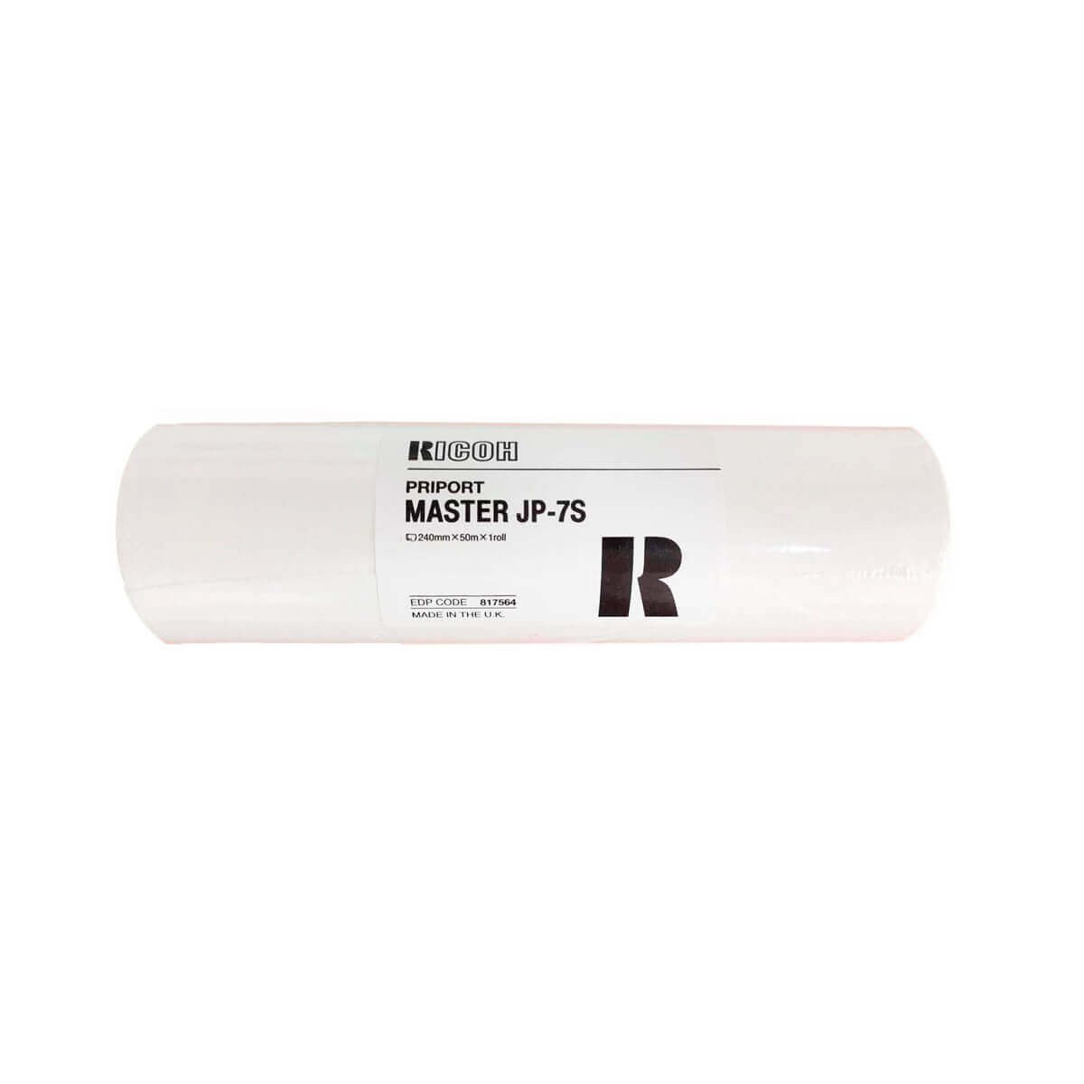 Máster térmico Ricoh JP-7 utilizado nos seguintes equipamentos: JP 730, JP730, JP 735, JP735, Gestetner CP-6123L. Comprimento de 50 metros e largura de 240mm. Cada rolo de máster rende até 100 gravações, cada pedaço de gravação rende aproximadamente 2.000 cópias. Garantia de 3 meses para defeito de fabricação. Marca: Ricoh